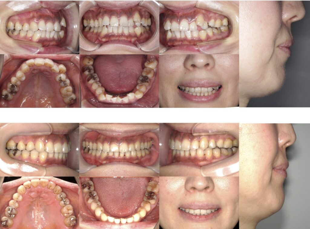 医療法人ヤマジ歯科・矯正歯科クリニック:症例紹介 上:過蓋咬合で下の前歯が見えない 下:矯正治療後